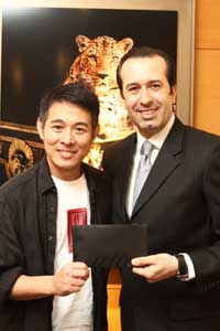 李連杰昨亮相品牌店名店2小時,并從品牌店的新加坡及馬來西亞董事總經(jīng)理Christopher Kilaniotis手中接過支票;據(jù)悉,Cartier在本地共籌得3萬新元善款,馬來西亞則籌得3萬馬幣(約1萬2200新元),整數(shù)4萬2200新元支票昨交給李連杰。