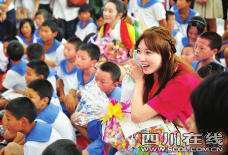 “小朋友們好,我是林志玲姐姐”“我是譚維維姐姐”“我是光良哥哥”……昨日上午,成都雙流星光熠熠,一場“愛在傳遞”安康家園兒童心系臺灣小朋友的活動在此舉行。林志玲、譚維維、曾寶儀、光良、江美琪、許慧欣、謝娜等遠道而來,和孩子們一起,為臺灣因“莫拉克”臺風(fēng)受災(zāi)的小朋友祈福。晚上,譚詠麟、韓紅、陳小春等也馬不停蹄加入其中,在雙流體育中心舉行了“愛帶我回家”大型公益晚會,關(guān)懷與感恩,淚水與希望一齊播撒。