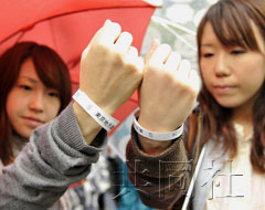 “共同社”消息,今日上午9時起正式發(fā)放抽簽號,而開始之前就有許多學(xué)生、主婦及西裝筆挺的上班族等排起了長隊。法院的工作人員依次替他們在手腕上系上寫有號碼的白紙手環(huán)。其中有不少人是媒體雇用的人才派遣公司等的人員。