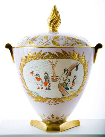 李亞鵬在2009年度嫣然天使基金慈善晚宴新聞發(fā)布會上表示,晚宴現(xiàn)場拍賣所需的藝術品已基本到位。其中,最吸引眼球的拍品無疑就是由兩位“潛力藝術家”竇靖童、李嫣聯(lián)手設計的Wedgwood-Trophy Vase(瑋致活—勝利之瓶)精致骨瓷。據悉,Wedgwood是英國傳統(tǒng)陶器品牌,竇靖童、李嫣為Trophy Vase所創(chuàng)作的這一設計,取材于一家人融洽相處的畫面,表現(xiàn)出小孩眼中的溫馨家庭氛圍和每個人都渴望得到的關愛。