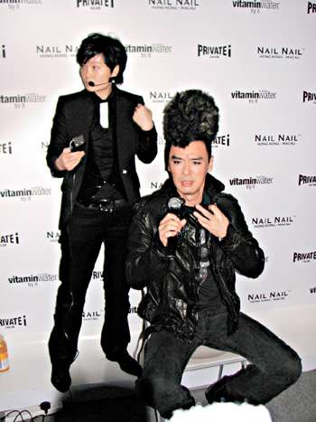 中新網12月11日電 前晚鐘鎮(zhèn)濤和郭富城緋聞女友王秀琳等人在香港出席發(fā)型活動,為了支持活動,大家的發(fā)型都十分夸張。鐘鎮(zhèn)濤不僅頭頂巨型雞冠頭,還自曝因女友懷孕,所以自己吃生發(fā)藥來壓抑欲望。