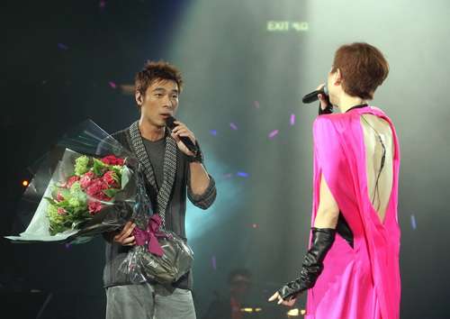 鄭秀文與舊愛許志安關(guān)系微妙,合唱時(shí),鄭秀文刻意將“是我愛你太多”的歌詞改為“是我愛他太多”,到最后唱到“其實(shí)你心里有沒有我”這一句時(shí),鄭秀文更表現(xiàn)出一臉害羞,不敢正面看安仔。在臺(tái)上安仔解釋此次送花,是因?yàn)樗词讏鰰r(shí),發(fā)現(xiàn)鄭秀文有一套桃紅色的衣服,所以特別買束花來襯她。鄭秀文聞言開心笑說:“多謝你啊,夠朋友哈。”