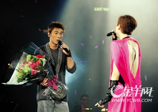 鄭秀文與許志安這一對舊情人,再見亦是朋友。前晚鄭秀文舉行香港演唱會里的第三場,許志安大方擔任嘉賓,還現場送上12朵玫瑰。之后接受訪問時記者稱12朵玫瑰代表的花語是“我愛你”,許志安立即緊張地說“不懂這些”。他又表示不怕此舉讓女友吃醋,而且“她也很欣賞鄭秀文的歌”。