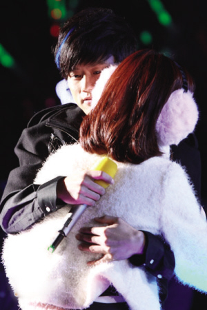張杰與謝娜的戀情從2007年延續(xù)至去年,其間話題始終不斷,就在兩個月前,兩個人還傳出了分手的消息,但到了跨年演唱會當晚,人們看到的依然是一如既往的甜蜜畫面:在演唱會的舞臺上,張杰深情地看著謝娜,還沒開始唱歌,謝娜的眼淚就已流了下來,接下來,張杰更現(xiàn)場改掉了《何必在一起》的歌詞,兩個人一起唱出了“我們要在一起”,當張杰擁抱住已經(jīng)哭成淚人的謝娜時,場面被渲染得如偶像劇一般浪漫感人,粉絲更是尖叫連連。