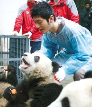 昨日,由臥龍中國(guó)保護(hù)大熊貓研究中心精心遴選的10只大熊貓,從該中心雅安碧峰峽基地啟程前往助陣上海世博。作為“中國(guó)保護(hù)大熊貓研究中心熊貓愛心大使”的黃曉明,同時(shí)又是成都和雅安的熊貓愛心大使,以及上海世博會(huì)志愿者宣傳大使,特意向劇組告假趕到雅安現(xiàn)場(chǎng)。此行他不僅是為了宣傳保護(hù)大熊貓和世博,最重要的是為了來(lái)替自己的一雙“兒女”送行。原來(lái)由他出資百萬(wàn)元認(rèn)養(yǎng)的地震后出生的全球首對(duì)雙胞胎大熊貓“平平”、“安安”這次就將以“哥哥”、“姐姐”的身份帶領(lǐng)另外8只熊貓遠(yuǎn)赴上海世博。(春城晚報(bào))