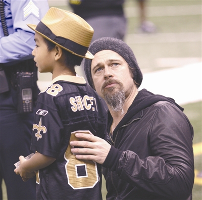 美國當?shù)貢r間1月16日,布拉德·皮特帶著養(yǎng)子馬多克斯和導演斯派克·李現(xiàn)身美式橄欖球賽場,在比賽間隙,皮特利用明星身份帶著兒子與偶像隊員來了個親密接觸,滿足了球迷兒子的小心愿。