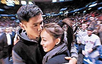 黑人說,易建聯(lián)建議他要在中場時間求婚,當時場內(nèi)的老外球迷也充當“助攻員”,不斷鼓掌起哄,讓范范最后點頭同意嫁他。他很愛籃球,求婚當天又是籃球巨星喬丹的生日,如今又求婚成功,意義重大,加上范范應(yīng)邀在NBA球賽開幕時演唱美國國歌,此行“成果豐碩”。