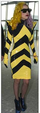 據(jù)臺(tái)灣媒體報(bào)道,美國(guó)女星LadyGaga近日出現(xiàn)在倫敦機(jī)場(chǎng)時(shí),竟穿著活像交通標(biāo)志的黃底黑條紋洋裝一件,很顯然她決定要自己為自己開(kāi)道,以減少不必要的支出。