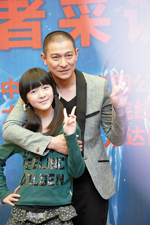自電影《長(zhǎng)江七號(hào)》之后,童星徐嬌認(rèn)片中的爸爸周星馳為干爸爸。這次在《未來(lái)警察》中,徐嬌又演劉德華的女兒,昨天的發(fā)布會(huì)上,徐嬌對(duì)劉德華也是一口一個(gè)“劉老爸”,非常親熱。