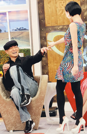 劉德華提及小S要用代言的私密處乳液遮家暴瘀青的新聞,小S則硬拉劉德華跳國(guó)標(biāo)舞,狂野的扭腰擺臀,最后整個(gè)人掛在他身上,再?gòu)乃柘禄^去。事后她對(duì)華仔的力氣大為贊美:“他完全撐得住我耶,上次跟康永哥跳這招,結(jié)果我整個(gè)人躺平在地上!