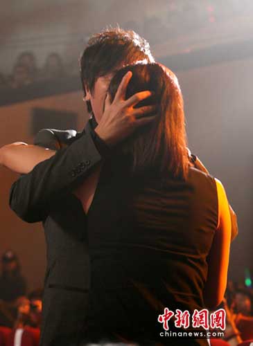 中新網(wǎng)4月12日電 4月11日晚,蒙牛酸酸乳音樂風(fēng)云榜十年盛典再回深圳盤點(diǎn)華語樂壇新世紀(jì)十年。本屆頒獎(jiǎng)星光熠熠,那英、陳奕迅、莫文蔚等華語樂壇大腕紛紛登場。本屆盛典評(píng)委會(huì)主席那英在活動(dòng)接近尾聲時(shí)榮獲“十年最具影響力音樂人物”大獎(jiǎng),在現(xiàn)場言辭激動(dòng)甚至動(dòng)情落淚,并和孫楠互相親吻。