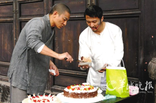 在今年的金像獎(jiǎng)上捧獎(jiǎng)后,謝霆鋒日前趕返橫店繼續(xù)開工,而導(dǎo)演陳木勝和劇組特別在《新少林寺》的拍攝場(chǎng)地為他準(zhǔn)備了一個(gè)迷你慶祝會(huì),并送上兩個(gè)分別寫上 “雙喜”和“臨門”的蛋糕,祝賀他贏得最佳男配角獎(jiǎng)之余,還即將第二次榮任爸爸。不過,慶祝會(huì)上最令謝霆鋒雀躍的是,他的偶像劉德華專門為他打氣,勉勵(lì)他明年要向最佳男主角獎(jiǎng)項(xiàng)邁進(jìn)。