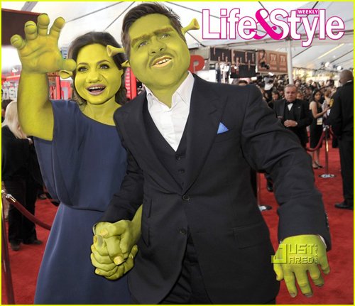 好萊塢電影大作《怪物史萊克4》將在今年5月21日上映,而一些雜志也抓住這個機(jī)會,將娛樂名人和史萊克聯(lián)系在一起吸引眼球,《Life & Style!》雜志就將布拉德·皮特夫婦、凱特·戈瑟琳以及蘇珊大媽惡搞成了《史萊克》中的形象。