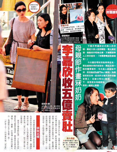 原來這次李嘉欣乖乖就范,盛傳是因為許家有人開出5億港元一胎的豐厚條件,只要李嘉欣愿意接受人工受孕,無論結果成功與否都有錢收。據(jù)知情人透露:“許家一直都希望嘉欣退出娛樂圈,專心生孩子當少奶奶,但嘉欣覺得經濟獨立好重要,不斷搏命掙錢,生孩子的事一直擺在第二位,所以許家開出五億生仔的條件,希望她放下工作,專心造人!