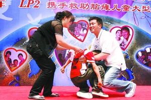 忙碌了幾個(gè)小時(shí)之后,現(xiàn)場(chǎng)活動(dòng)正式開始,此時(shí)的滿文軍來不及換好衣服,就用歌聲表達(dá)了自己的愛心愿望。雖然現(xiàn)場(chǎng)音響條件不能令人滿意,但是他的一首愛心歌曲《愛唱給你聽》還是贏得了觀眾和媒體的掌聲一片,在大家的歡呼中,志愿者代表上臺(tái)宣讀倡議書,并宣布“365腦癱孤兒愛心基金”啟動(dòng)儀式開始。一個(gè)令滿文軍意想不到的事情發(fā)生了,兒助會(huì)吳建英總干事在現(xiàn)場(chǎng)重新將滿文軍去年失去的榮譽(yù)——“腦癱康復(fù)項(xiàng)目”愛心公益大使的榮譽(yù)證書頒給了滿文軍。面對(duì)重新獲得的榮譽(yù),滿文軍兩眼熱淚盈眶,認(rèn)真地接過證書!案兄x兒助會(huì)對(duì)我的信任,我會(huì)在日后加倍努力工作,為腦癱兒童的康復(fù)作出我能盡的一份心力。”