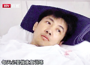 《法治進(jìn)行時(shí)》記者走進(jìn)病房時(shí),鄢頗躺在病床上,李小冉就坐在一邊。鄢頗看上去雖然很虛弱,但是精神還不錯(cuò),還不時(shí)和李小冉有說(shuō)有笑。他給記者看了右臂和右腿打的石膏:“打著石膏的三處都是有骨折的!薄昂笃谛枰畈欢喟肽甑揭荒甑拿刻毂匾目祻(fù)訓(xùn)練!闭f(shuō)起鄢頗的傷情,李小冉忍不住再次落淚:“愛(ài)一個(gè)人就是,你會(huì)覺(jué)得雖然很累,但是你心里是很開(kāi)心的,然后看著他一天天好起來(lái),你會(huì)覺(jué)得特別踏實(shí)。”