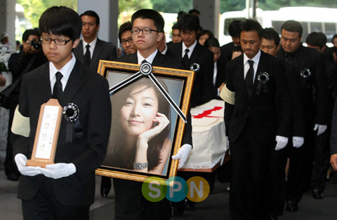 “朝鮮日?qǐng)?bào)”消息,張真英的兩個(gè)侄子分別手捧牌位和遺像,走在送靈隊(duì)伍最前面。緊隨棺材的母親止不住悲痛的淚水,讓人感到心痛。遺屬和安在旭、車(chē)太賢、金亞中等圈內(nèi)好友及參加遺體告別儀式的親朋好友也在送靈隊(duì)伍之中。
