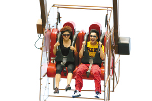 沖上云霄、過山車、大擺錘……小沈陽一共玩了八個項目,全是主題公園里最考驗人膽量的游樂項目。但小沈陽完全不放在眼里,他挑選了過山車的第一排坐;而坐在海盜船上的時候,他卻又挑了最后一排,甚至在海盜船擺蕩至最高處的時候,他竟然拉開了安全擋桿,站了起來大喊大叫,“完全玩瘋了,倒是下面的游客被他嚇得半死!迸阃臈钚〗阏f:“他告訴我,他很喜歡去游樂園玩,最喜歡迪斯尼!毙∩蜿栕詈筮對龍門陣提了意見:“他說玩得挺盡興的,不過與迪斯尼相比,還是要多多努力。”