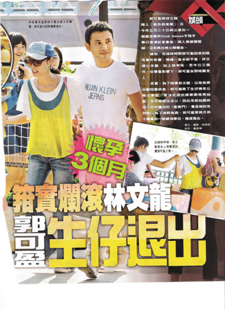 據(jù)報(bào)道,郭可盈已經(jīng)有三個(gè)月身孕,她的朋友透露:“文龍一直都希望有小朋友,但可盈事業(yè)心太重,整天想著工作,不想生孩子。不過發(fā)生桃色勒索案之后,他們經(jīng)常溝通,患難見真情,可盈終于答應(yīng)生孩子,她希望有了孩子之后,文龍會(huì)有責(zé)任感,不要再像以前那樣出去玩!