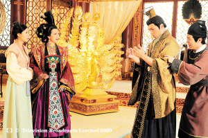 《金枝欲孽》讓TVB的宮廷戲再次回暖,后宮傾軋、爾虞我詐,詮釋“后宮哲學(xué)”的《金枝欲孽》在內(nèi)地也打了一個(gè)漂亮的翻身仗。而在時(shí)裝劇難有突破的情況下,TVB的古裝戰(zhàn)略則一向頗為討好。作為無線42周年的臺(tái)慶巨獻(xiàn),《宮心計(jì)》與《富貴門》分庭抗禮,同時(shí)播出的這兩部劇集都可謂高開高走,一并突破了32點(diǎn)的收視紀(jì)錄。相比之下,《宮心計(jì)》勢頭更猛,首播收視即達(dá)到36點(diǎn),收視觀眾超過230萬,創(chuàng)造了TVB有史以來的最高紀(jì)錄。隨著《宮心計(jì)》劇情的不斷深入,圍繞該劇的話題也在觀眾中不斷展開。而無論是被指疑似《大長今》,還是主演佘詩曼、楊怡突破不大的指責(zé),《宮心計(jì)》卻一路高歌猛進(jìn),收視率不曾掉下32點(diǎn)。不僅如此,老戲骨米雪、關(guān)菊英和男一號(hào)陳豪的人氣也一路飆升。