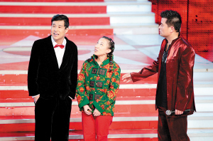 一番插科打諢后,小沈陽和毛毛的“不差錢”組合,開始與星光大道的其他選手進行較量,看誰能最終演唱《三槍拍案驚奇》的主題歌。而這一期的嘉賓評委則是“三槍”劇組的主創(chuàng)人員。誰知前幾輪亮分時,“不差錢”組合根本沒占上風。眼看唱主題歌的事要黃了,小沈陽和毛毛終于使出最后的殺手锏,請出自己的“舅姥爺”,這“舅姥爺”不是別人,正是導演張藝謀。