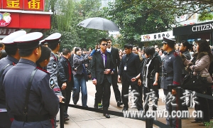 昨日下午2點,孫紅雷秘密潛入重慶,在沒有任何預兆的情況下,出現(xiàn)在了江北步行街某品牌手表的新店剪彩儀式上。雖然主辦方非常低調,但孫紅雷出場卻很高調。一身黑衣裝束,不下雨也有專人撐傘,沒太陽也戴著墨鏡。在上千人的圍觀中亮相10分鐘后飄然而去。