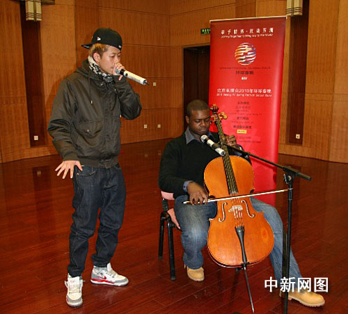 北京電視臺(tái)《環(huán)球春晚》希望通過(guò)不同國(guó)籍和文化背景的演員聯(lián)手,打造一場(chǎng)極具視覺(jué)沖擊力和感染力的春晚“大餐”。昨天他們專(zhuān)門(mén)邀請(qǐng)了來(lái)自美國(guó)的黑人留學(xué)生凱文,以及來(lái)自上海的Hip-Hop高手蟲(chóng)二一起排練Beat-Box。