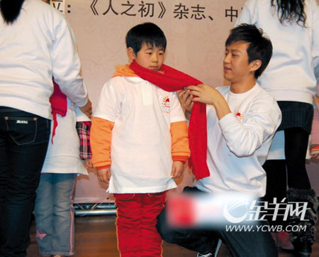 鄧超以形象代言人的身份出席了陽光女孩基金“幸福圍巾溫暖接力”愛心行動啟動儀式,并代表話劇《翠花》劇組向“陽光女孩”基金捐款10萬元人民幣。談起愛心圍脖,鄧超直言女友孫儷不會編織圍巾,但他笑言:“為了陽光女孩,我回去會讓她學(xué)織!碧鹈鄣谋砬榇蚱屏藘扇朔质值膫餮。