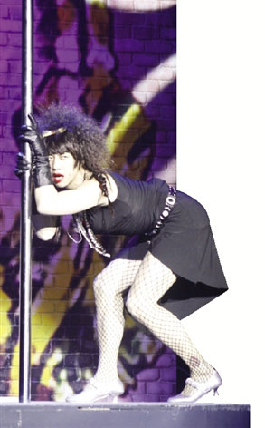 鄧超扮演的兩個(gè)角色都個(gè)性十足,一個(gè)是自負(fù)女子九兒,一個(gè)是喜歡裝酷、滿嘴外語(yǔ)的情圣俞白眉。一個(gè)是妖嬈的女子,一個(gè)是正宗的男人,穿梭在這兩個(gè)跨度極大的角色之間,鄧超游刃有余。開場(chǎng)不久,鄧超扮演的九兒身穿性感的黑裙背對(duì)觀眾出場(chǎng),先是一段“婀娜多姿”的舞蹈,隨后又沿著豎桿從二樓滑向一樓,與房東展開了一場(chǎng)令人意想不到的智力測(cè)試。鄧超的舞臺(tái)動(dòng)作有些夸張、不雅,由于是男扮女裝,充滿了搞怪意味,因此大多數(shù)觀眾都抱以寬容的大笑。根據(jù)問卷調(diào)查統(tǒng)計(jì),12名觀眾認(rèn)為九兒的扮相增加了喜劇效果,占總數(shù)60%;6名觀眾表示很不錯(cuò),占30%;1名觀眾認(rèn)為太夸張,1名觀眾感覺一般。
