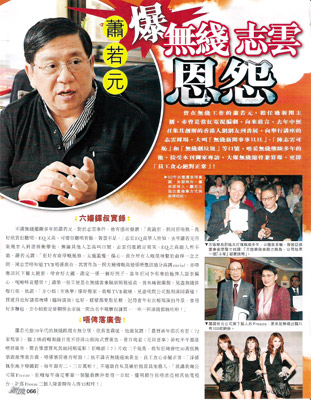多年來,蕭若元一直不滿無線的壟斷行為。對于陳志云涉貪事件,他有感而發(fā):“我認(rèn)識他多年,但和他不熟。我很欣賞他的聰明,EQ又高,可惜他聰明有余,智慧不足!标愔驹艵Q高眾人皆知,去年蕭若元召集了20多人在書展上攻擊他,無論別人怎么高喊口號,陳志云仍能鎮(zhèn)定微笑。但蕭若元指出:“陳志云太過濫權(quán)、偏心,作為一個大機(jī)構(gòu)的高層,他不應(yīng)該過分高調(diào),也不該和下屬太過親密,那樣會很麻煩。蕭定一就是一個例子,他當(dāng)年和李彩樺拍拖,就被人指偏心。”