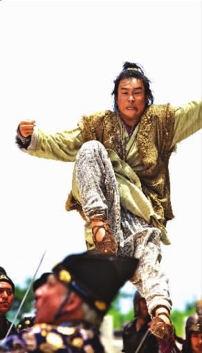 小沈陽在《大笑江湖》中飾演一名平凡小鞋匠,機(jī)緣巧合之下練就絕世武功,變成了一個勇于承擔(dān)的男子漢。既然是大俠當(dāng)然要會“飛”,而動作指導(dǎo)程小東也是個“大好人”,因此讓小沈陽開心地在天上飛來飛去一整天,圓了他飛天小俠的夢。程小東表示:“小沈陽作為二人轉(zhuǎn)演員還是有些功夫底子的,否則不可能吊在半空中一天還這么瀟灑,換作別人早送醫(yī)院了!辈贿^由于橫店天氣過于炎熱,小沈陽一遍遍拳打腳踢、跳躍騰挪,最終虛脫不起,也差點(diǎn)送醫(yī)院。記者邱晨通訊員趙佳