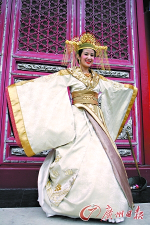 頭頂黃金冠,身披金色鳳袍,脖子上還扣著一串沉甸甸的金鏈子,這是吳君如所有參演的王晶電影里最賢良淑德、精美絕倫的一次。不過,在橫店白天30攝氏度的高溫下,這套華麗的“戰(zhàn)衣”吳君如一穿就得12個小時。此外,吳君如還得忍受對女兒的相思之苦。“我都7天沒有見她了!還好過兩三天就拍完了!彼嬖V記者,因為舍不得女兒,之前來劇組報到的時候自己特別選了香港到杭州最晚的一班飛機,為的就是要賴到最后一分鐘,多陪女兒一會兒!瓣惪尚炼几摇对V’ 了。他在上海拍《十月圍城》,問我為什么不能先飛到上?纯此賮頇M店。說實話,我都沒想到他。我只是想,從上海到橫店要多花兩個小時,我還是把這點時間陪女兒好了。”