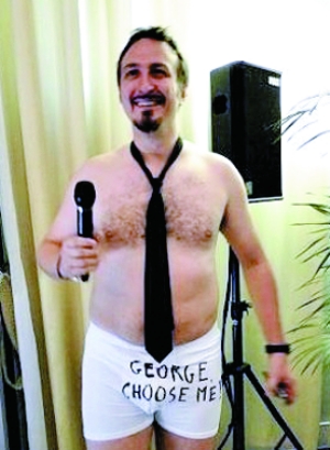 出人意料的是,一名意大利男記者也向喬治索吻:“喬治,選我,選我。我能吻你嗎?就一次!”說(shuō)話間,他脫去上衣和褲子,只剩黑領(lǐng)帶和短褲,短褲前面還寫(xiě)著“GEORGE,CHOOSE ME(喬治,選我)”。克魯尼處變不驚,微微一笑:“你敢冒這么大的風(fēng)險(xiǎn)非常勇敢,可惜它并不奏效。不過(guò),你的領(lǐng)帶非常漂亮,而且很長(zhǎng)。”克魯尼的幽默引來(lái)全場(chǎng)大笑。