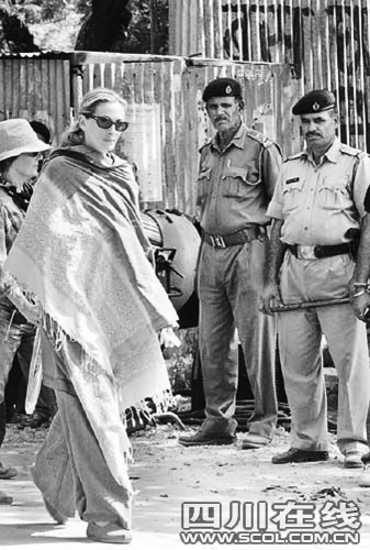 正在印度拍攝新片《Eat, Pray,Love》的好萊塢巨星茱莉亞·羅伯茨,27日穿上印度女士傳統(tǒng)服飾,在當(dāng)?shù)乇辈康男〈迩f開工,惹來大批記者緊貼追訪。有村民為了一睹金像影后的風(fēng)采,爬到樹上及天臺,當(dāng)中包括小朋友。當(dāng)?shù)鼐揭矅?yán)陣以待,派出五十名手持竹棍的警員到場保護茱莉亞出入并維持秩序。而為免拍攝內(nèi)容外泄,電影公司在片場掛上黑布。 聞聞