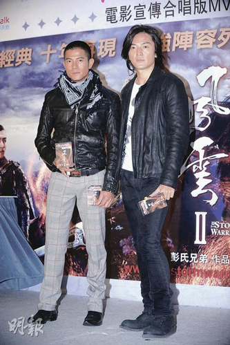 中新網(wǎng)11月23日電 郭富城及鄭伊健 昨日出席電影《風(fēng)云II》合唱版MV啟播禮,早前有指兩人因爭唱主題曲而鬧不和,城城說:“主題曲原本由我獨(dú)唱,歌名《風(fēng)云義》亦由我想出來,不過電影公司提議合唱以配合宣傳!背浅潜硎疽两∠蠕浺,他聽過后覺得伊健表現(xiàn)非常好,而他入行以來未試過與男生合唱,所以感覺很新鮮。