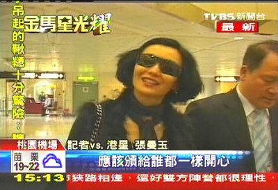 據(jù)“東森新聞”消息,墨鏡、絲巾,肩上充滿造型的包包,港星張曼玉一身流行打扮現(xiàn)身桃園機(jī)場(chǎng)。記者:“大概心里有沒(méi)有想說(shuō)一個(gè)名單?”港星張曼玉:“嗯,沒(méi)有,我覺(jué)得頒獎(jiǎng)嘉賓,不應(yīng)該這樣想,應(yīng)該頒給誰(shuí)都一樣開(kāi)心。”
