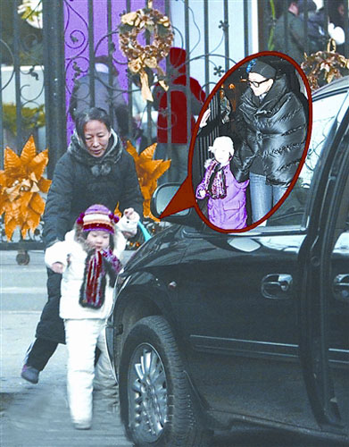 近日,記者來到位于INTEL大廈的章子男居所附近,恰巧趕上章子怡之前使用的那輛黑色道奇駛出大廈,記者便跟了上去。該車最終來到位于望京的某小學(xué)門口,而后一中年女子迅速下車,站在門口開始向校園內(nèi)觀望。沒過多久,一個穿著一襲白衣的小女孩向中年女子跑了過來,該女孩就是章子男的女兒。中年女子未作停留,迅速將女孩領(lǐng)到了車內(nèi),隨后一溜煙離開。