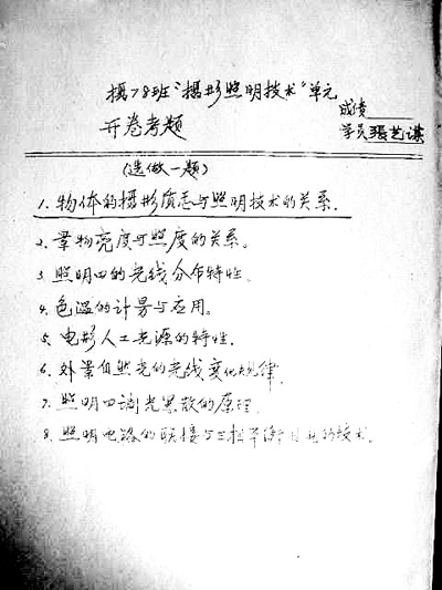 被曬在網(wǎng)上的這份答卷是“攝78班攝影照明技術(shù)單元”的開(kāi)卷考題,在學(xué)員一欄即填著“張藝謀”。因當(dāng)年沒(méi)有電腦只有鋼筆,經(jīng)記者對(duì)比張藝謀手跡,確為張藝謀當(dāng)年所答。長(zhǎng)達(dá)3頁(yè)的答卷,沒(méi)有得到其電影那樣的“爭(zhēng)論”,而得到了網(wǎng)友一片贊譽(yù),“真不是一般的整齊啊,和印刷出來(lái)的一樣,不打格也寫(xiě)不歪……”“字如其人”、“規(guī)矩、整潔”、“膜拜加學(xué)習(xí)”,甚至有網(wǎng)友說(shuō),“張藝謀應(yīng)該來(lái)寫(xiě)字,創(chuàng)造藝謀字體當(dāng)字帖,完全可以比肩徐靜蕾嘛!” (華商報(bào)記者 唐愛(ài)明)