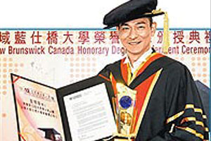 中新網(wǎng)5月5日電 綜合媒體消息,劉德華昨日獲“世界杰出華人獎(jiǎng)”和“加拿大紐賓士域藍(lán)仕橋大學(xué)榮譽(yù)博士”雙料肯定,而這次的“獲封”也讓劉天王的學(xué)歷從高中直接級(jí)跳到博士,一圓當(dāng)年求學(xué)夢(mèng)。