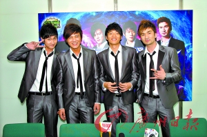 日前曾做客《大洋星閃亮》的國(guó)內(nèi)首支男模新聲——風(fēng)云組合,5月18日晚又帶著新專輯《風(fēng)云》參加了廣東電臺(tái)音樂之聲為其舉行的歌迷會(huì),現(xiàn)場(chǎng)演繹了《你愛我嗎》、《TOP STAR》等多首不同風(fēng)格的歌曲,展示了自己T臺(tái)以外的舞臺(tái)魅力。