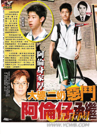 雖然現(xiàn)階段阿倫極力避免讓兒子曝光,但據(jù)知他眼見愛子外形討好,又遺傳了自己的歌唱天分,現(xiàn)已有七級(jí)鋼琴的造詣,故有意帶兒子入行。據(jù)唱片公司職員爆料:“阿倫整天在高層面前提起自己的兒子,說他長(zhǎng)得帥唱歌又好!逼鋵(shí),除了為兒子鋪好路,身家豐厚的阿倫也在積極為愛子的生活作打算。雖然阿倫大部分財(cái)產(chǎn)都由發(fā)妻莎莉掌管,但真正歸莎莉所有的物業(yè)只有約值3000萬(wàn)元,而保守估計(jì)阿倫坐擁逾5億資產(chǎn)。為防他日“兩房”爭(zhēng)寵,同時(shí)也為兒子的將來著想,據(jù)知阿倫早就打算將資產(chǎn)轉(zhuǎn)到兒子名下!岸獭盬endy雖然現(xiàn)在僅有兩個(gè)房子在手,但作為5億家產(chǎn)繼承人之母,下半世當(dāng)然不用愁!(阿文)