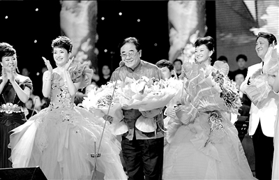 昨晚,金鐵霖的30多位學(xué)生輪流獻(xiàn)唱。呂繼宏的《咱老百姓》、劉斌的《當(dāng)兵的人》、閻維文的《小白楊》、張也的《走進(jìn)新時(shí)代》、董文華的《今天是你的生日,中國》等,都有極高的人氣。吳碧霞演唱的歌劇《康蒂德》選段《紙醉金迷》是演出的一大亮點(diǎn),除了聲音極富穿透力,吳碧霞在臺(tái)上的表演非常出彩,將角色哭與笑、苦與樂的矛盾表現(xiàn)得淋漓盡致。壓軸出場的宋祖英演唱了《茉莉花》和《愛我中華》。記者許青紅