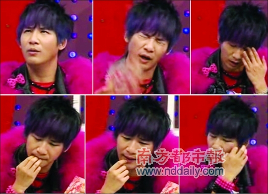在后面的節(jié)目中,對于男女主持的提問,大張偉咬手指、挖眼屎,拿紙巾擦汗,最后索性脫掉了外套喃喃自語,“我今天怎么了!”完全不在狀態(tài)(見上圖)。大鵬終究也被逼“毛”了,突然起身丟下提問稿憤怒離場,直播節(jié)目被迫中斷。這段視頻曝光后,不少網(wǎng)友認為大張偉的狀況是犯了毒隱,“這家伙肯定是溜冰(指吸食某種毒品)了”。(記者 黃銳海 實習生 劉文斯)
