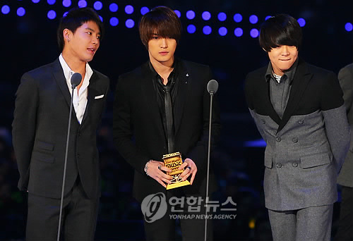 英雄在中則含淚發(fā)表獲獎感言,他說“希望通過這里向正在關(guān)注頒獎盛會的所有海外及韓國的歌迷們,以及也許正在看著這個(gè)頒獎典禮的其他2名成員允浩和昌珉說一句,我愛你們。”