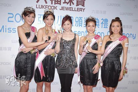 中新網(wǎng)11月6日電 出爐亞姐冠軍許瑩、亞軍王希瑤、季軍許嘉慧及友誼小姐張加慧,昨天中午出席后冠及首飾領(lǐng)獎活動。港姐楊寶玲也專程回港為亞姐冠軍加冕。