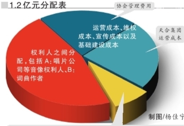 音集協(xié)常務(wù)副理事長(zhǎng)、總干事王化鵬告訴記者,此次方案中確定的50%提取比例,其中有23%是協(xié)會(huì)的人員運(yùn)營(yíng)管理費(fèi)用,另外27%是天合集團(tuán)的運(yùn)營(yíng)成本。雖然收取的版權(quán)費(fèi)總數(shù)看似可觀,但為了開展收費(fèi),音集協(xié)委托的天合集團(tuán)在全國(guó)的30個(gè)省、自治區(qū)、直轄市建立了子公司,員工總數(shù)達(dá)到450余人,同時(shí),為了推動(dòng)收費(fèi)進(jìn)程,音集協(xié)先后在18個(gè)省市就卡拉OK侵權(quán)提起了960多起行政投訴和民事訴訟。這些費(fèi)用再加上曲庫(kù)建設(shè)、宣傳、市場(chǎng)稽核等費(fèi)用,已投入權(quán)利人自籌資金3.6億元,而服務(wù)商天合集團(tuán)的投入已達(dá)到5.6億元。隨著收費(fèi)的增加,提取的管理費(fèi)比例還會(huì)相應(yīng)降低。