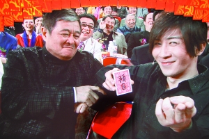 獲得語言類一等獎(jiǎng)的本山大叔在元宵晚會(huì)上依然是只露面不表演。去年元宵晚會(huì)上,小沈陽一人登臺(tái)獨(dú)唱《大!,不僅現(xiàn)場唱得趙本山淚水漣漣,也讓大家對師徒二人之間的情誼留下深刻印象。此前有消息稱今年元宵晚會(huì)小沈陽和王小利將表演二人轉(zhuǎn)絕活,但最終小沈陽、王小利及趙本山首位歌手徒弟湯潮合唱了一首歌曲《美了美了》,以此“慶祝”得獎(jiǎng)之后的好心情。