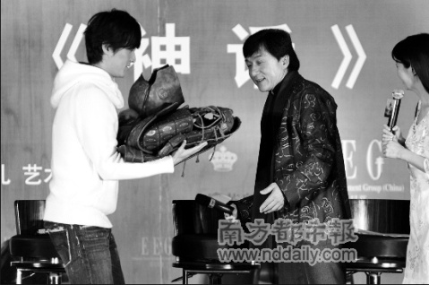 成龍與金喜善當(dāng)年的一部《神話》曾經(jīng)創(chuàng)下不菲票房。昨日下午,成龍?jiān)诒本┬?上影英皇將投資4000萬(wàn)將電影《神話》改編翻拍成電視劇,由他擔(dān)任總監(jiān)制,并請(qǐng)來(lái)唐季禮導(dǎo)演擔(dān)任藝術(shù)總監(jiān),而男主角已經(jīng)確定由胡歌擔(dān)綱,女主角則將通過網(wǎng)絡(luò)海選。該劇已定于今年春節(jié)后正式開機(jī),將在2010年的春節(jié)播出。