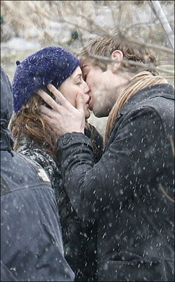 《緋聞女孩》最新一集正在美國的如火如荼的拍攝中,小編昨天帶大家看了布萊克·萊弗利的時(shí)尚片場照,今天帶大家來領(lǐng)略浪漫片場嘍,切斯·克勞福在風(fēng)雪中熱吻莉頓·梅斯特,冰天雪地中的一吻,相信這集會很有看頭。