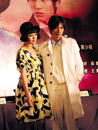 昨天,范冰冰挑戰(zhàn)劉曉慶之作———電視劇《金大班》片花首次在上海曝光。包括范冰冰、周渝民(仔仔)、方中信、黃少琪等在內(nèi)的主創(chuàng)人員,都參加了在上!靶碌貥(biāo)”環(huán)球金融中心舉行的盛大新聞發(fā)布會(huì)。不過(guò),片花只是點(diǎn)綴,范冰冰牽手仔仔卻遭到拒絕,成了現(xiàn)場(chǎng)最大亮點(diǎn)。